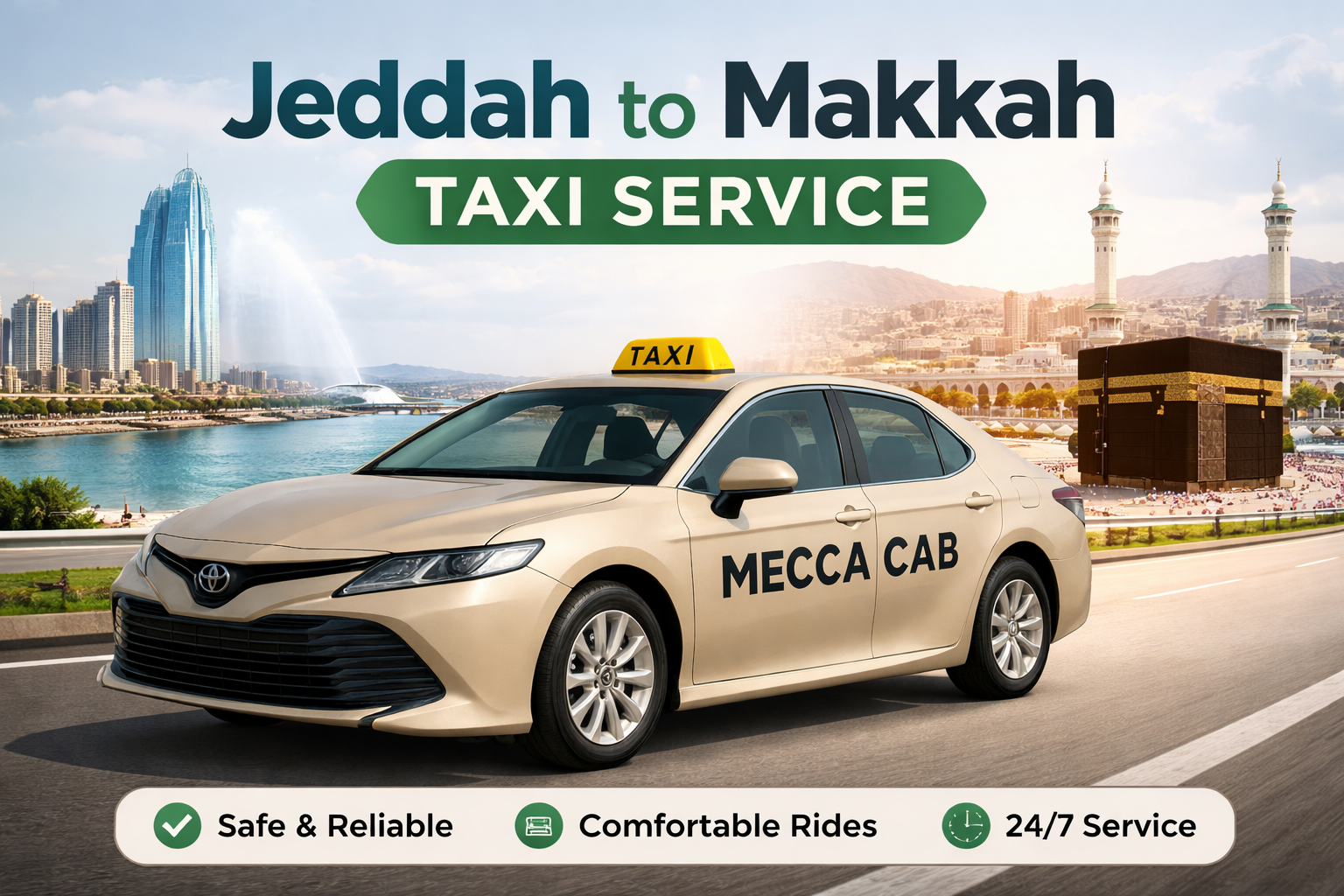Choose Mecca Cab for a safe, reliable, and comfortable Jeddah to Makkah taxi service. Contact us today to book your ride and enjoy a smooth journey with professional service and peace of mind.